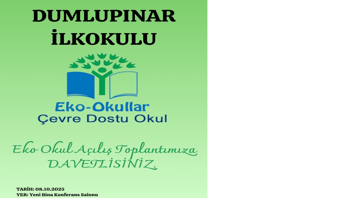 8 Ekim 2025 Çarşamba günü saat 10.00 da yapılacak olan Eko okul açılış toplantımıza davetlisiniz .